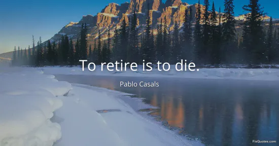 Casals turns retirement into a kind of moral failure: not a vacation, not a reward, but a slow self-erasure. Coming from a musician whose whole identity is bound up in daily practice and public performance, "To retire is to die" isn’t melodrama so much as a blunt description of what happens when you stop making the thing that made you. The line works because it refuses the soft language we wrap around aging. No "well-deserved rest", no graceful exit. Just a stark equivalence that shocks you into noticing how much of modern life is organized around withdrawal.