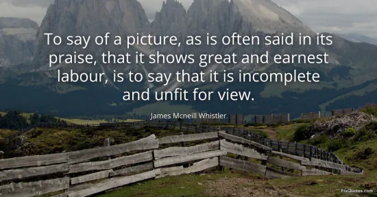 Whistler, James Mcneill. "To say of a picture, as is often said in its praise, that it shows great and earnest labour, is to say that it is incomplete and unfit for view." FixQuotes. January 16, 2026. https://fixquotes.com/quotes/to-say-of-a-picture-as-is-often-said-in-its-130277/.
