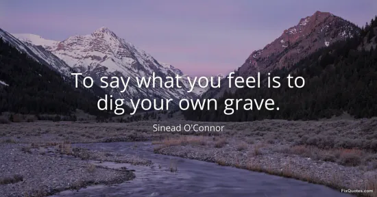 O'Connor, Sinead. "To say what you feel is to dig your own grave." FixQuotes. January 15, 2026. https://fixquotes.com/quotes/to-say-what-you-feel-is-to-dig-your-own-grave-90668/.