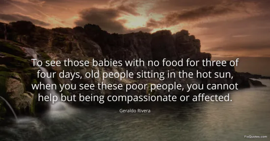 Rivera, Geraldo. "To see those babies with no food for three of four days, old people sitting in the hot sun, when you see these poor people, you cannot help but being compassionate or affected." FixQuotes. January 15, 2026. https://fixquotes.com/quotes/to-see-those-babies-with-no-food-for-three-of-142524/.