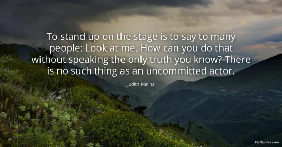 Malina, Judith. (2026, January 16). To stand up on the stage is to say to many people: Look at me. How can you do that without speaking the only truth you know? There is no such thing as an uncommitted actor. FixQuotes. https://fixquotes.com/quotes/to-stand-up-on-the-stage-is-to-say-to-many-people-127948/