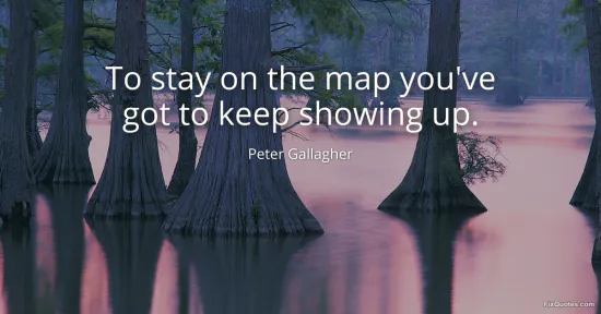 Gallagher, Peter. (2026, February 19). To stay on the map you've got to keep showing up. FixQuotes. https://fixquotes.com/quotes/to-stay-on-the-map-youve-got-to-keep-showing-up-159096/