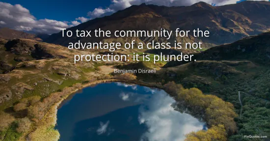 Disraeli, Benjamin. (2026, January 15). To tax the community for the advantage of a class is not protection: it is plunder. FixQuotes. https://fixquotes.com/quotes/to-tax-the-community-for-the-advantage-of-a-class-35392/