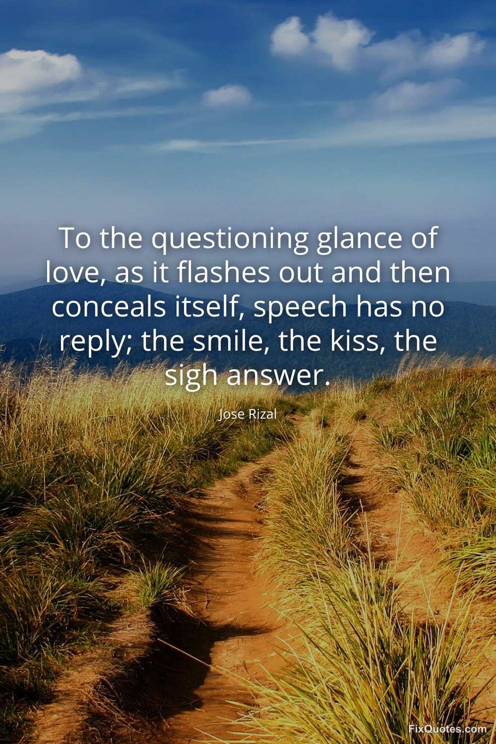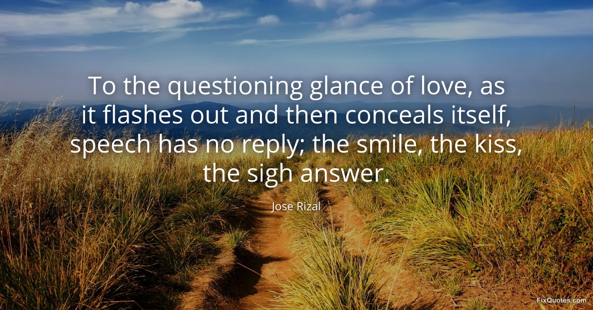 Rizal, Jose. (2026, February 10). To the questioning glance of love, as it flashes out and then conceals itself, speech has no reply; the smile, the kiss, the sigh answer. FixQuotes. https://fixquotes.com/quotes/to-the-questioning-glance-of-love-as-it-flashes-185106/