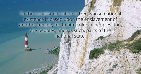 Liebknecht, Karl. "To the socialist no nation is free whose national existence is based upon the enslavement of another people, for to him colonial peoples, too, are peoples, and, as such, parts of the national state." FixQuotes. January 16, 2026. https://fixquotes.com/quotes/to-the-socialist-no-nation-is-free-whose-national-101774/.