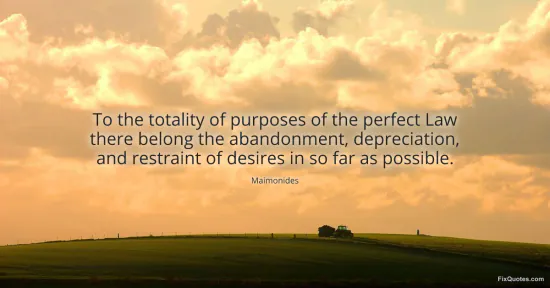 Maimonides. "To the totality of purposes of the perfect Law there belong the abandonment, depreciation, and restraint of desires in so far as possible." FixQuotes. January 17, 2026. https://fixquotes.com/quotes/to-the-totality-of-purposes-of-the-perfect-law-70136/.