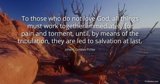 Fichte, Johann Gottlieb. "To those who do not love God, all things must work together immediately for pain and torment, until, by means of the tribulation, they are led to salvation at last." FixQuotes. January 15, 2026. https://fixquotes.com/quotes/to-those-who-do-not-love-god-all-things-must-work-160512/.