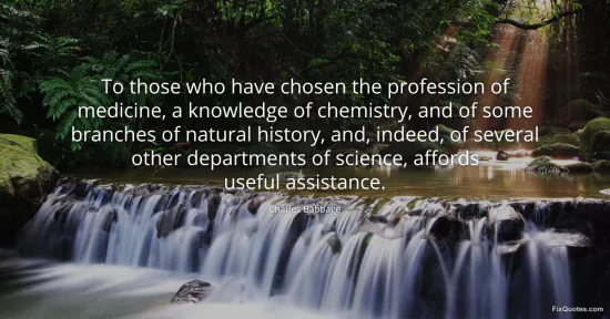 Babbage, Charles. "To those who have chosen the profession of medicine, a knowledge of chemistry, and of some branches of natural history, and, indeed, of several other departments of science, affords useful assistance." FixQuotes. January 15, 2026. https://fixquotes.com/quotes/to-those-who-have-chosen-the-profession-of-12813/.