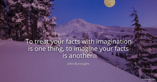 Burroughs, John. "To treat your facts with imagination is one thing, to imagine your facts is another." FixQuotes. January 17, 2026. https://fixquotes.com/quotes/to-treat-your-facts-with-imagination-is-one-thing-56423/.