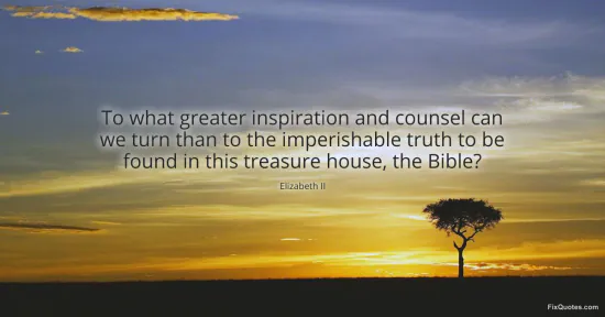 II, Elizabeth. "To what greater inspiration and counsel can we turn than to the imperishable truth to be found in this treasure house, the Bible?" FixQuotes. January 18, 2026. https://fixquotes.com/quotes/to-what-greater-inspiration-and-counsel-can-we-15463/.