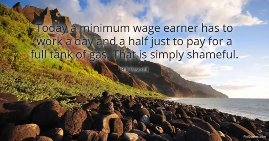 "Today a minimum wage earner has to work a day and a half just to pay for a full tank of gas. That is simply shameful." FixQuotes, 15 Jan. 2026, https://fixquotes.com/quotes/today-a-minimum-wage-earner-has-to-work-a-day-and-139830/. Accessed 12 Feb. 2026.