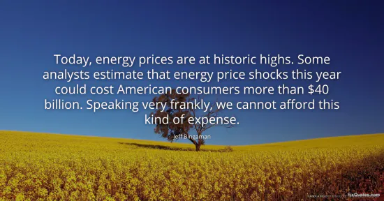 Bingaman, Jeff. (2026, January 16). Today, energy prices are at historic highs. Some analysts estimate that energy price shocks this year could cost American consumers more than $40 billion. Speaking very frankly, we cannot afford this kind of expense. FixQuotes. https://fixquotes.com/quotes/today-energy-prices-are-at-historic-highs-some-122307/