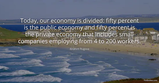 Rugova, Ibrahim. (2026, January 15). Today, our economy is divided: fifty percent is the public economy and fifty percent is the private economy that includes small companies employing from 4 to 200 workers. FixQuotes. https://fixquotes.com/quotes/today-our-economy-is-divided-fifty-percent-is-the-146665/
