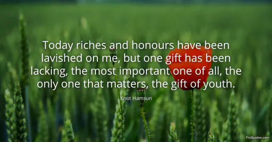 "Today riches and honours have been lavished on me, but one gift has been lacking, the most important one of all, the only one that matters, the gift of youth"