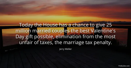 Weller, Jerry. (2026, January 15). Today the House has a chance to give 25 million married couples the best Valentine's Day gift possible, elimination from the most unfair of taxes, the marriage tax penalty. FixQuotes. https://fixquotes.com/quotes/today-the-house-has-a-chance-to-give-25-million-151395/