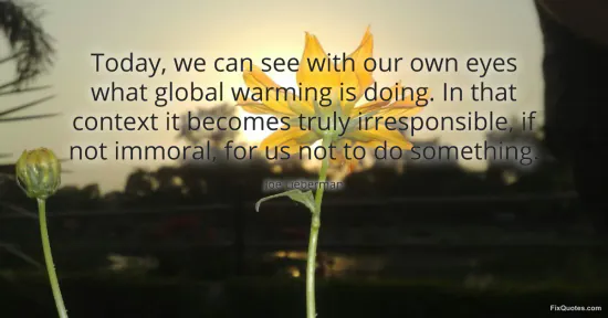 "Today, we can see with our own eyes what global warming is doing. In that context it becomes truly irresponsible, if not immoral, for us not to do something." FixQuotes, 15 Jan. 2026, https://fixquotes.com/quotes/today-we-can-see-with-our-own-eyes-what-global-86584/. Accessed 12 Feb. 2026.