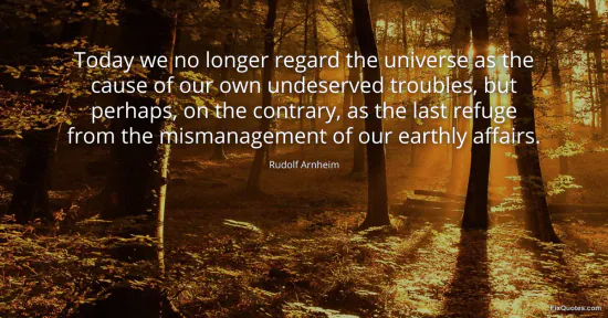 Arnheim, Rudolf. "Today we no longer regard the universe as the cause of our own undeserved troubles, but perhaps, on the contrary, as the last refuge from the mismanagement of our earthly affairs." FixQuotes. February 16, 2026. https://fixquotes.com/quotes/today-we-no-longer-regard-the-universe-as-the-129035/.