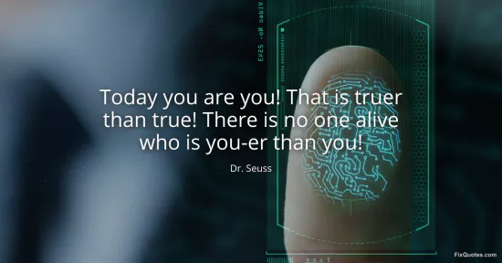 Seuss, Dr. "Today you are you! That is truer than true! There is no one alive who is you-er than you!" FixQuotes. January 11, 2026. https://fixquotes.com/quotes/today-you-are-you-that-is-truer-than-true-there-30906/.