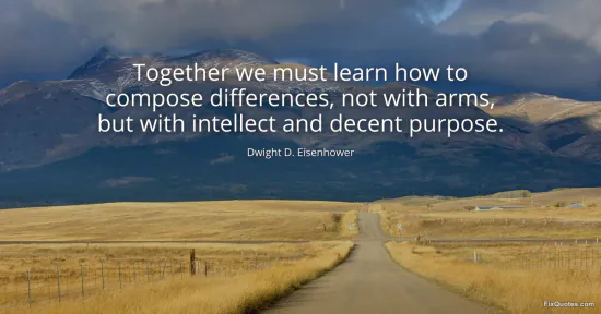 Eisenhower, Dwight D. (2026, January 18). Together we must learn how to compose differences, not with arms, but with intellect and decent purpose. FixQuotes. https://fixquotes.com/quotes/together-we-must-learn-how-to-compose-differences-16959/