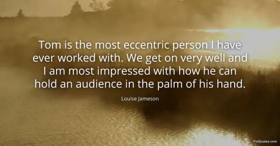 Jameson, Louise. "Tom is the most eccentric person I have ever worked with. We get on very well and I am most impressed with how he can hold an audience in the palm of his hand." FixQuotes. January 15, 2026. https://fixquotes.com/quotes/tom-is-the-most-eccentric-person-i-have-ever-153776/.