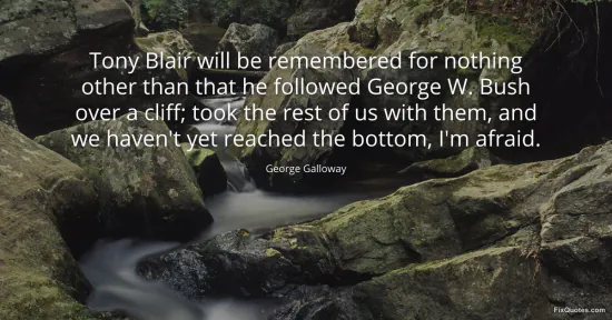 Galloway, George. (2026, January 16). Tony Blair will be remembered for nothing other than that he followed George W. Bush over a cliff; took the rest of us with them, and we haven't yet reached the bottom, I'm afraid. FixQuotes. https://fixquotes.com/quotes/tony-blair-will-be-remembered-for-nothing-other-91040/
