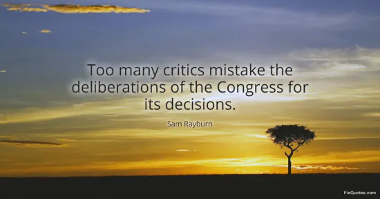 Rayburn, Sam. "Too many critics mistake the deliberations of the Congress for its decisions." FixQuotes. January 16, 2026. https://fixquotes.com/quotes/too-many-critics-mistake-the-deliberations-of-the-94564/.
