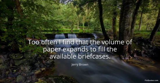 Brown, Jerry. (2026, January 17). Too often I find that the volume of paper expands to fill the available briefcases. FixQuotes. https://fixquotes.com/quotes/too-often-i-find-that-the-volume-of-paper-expands-63964/