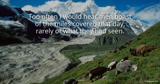 L'Amour, Louis. (2026, January 16). Too often I would hear men boast of the miles covered that day, rarely of what they had seen. FixQuotes. https://fixquotes.com/quotes/too-often-i-would-hear-men-boast-of-the-miles-114221/