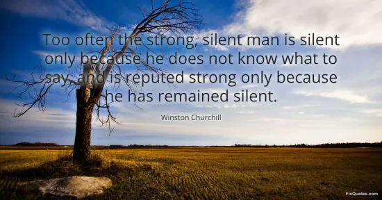 Churchill, Winston. (2026, January 17). Too often the strong, silent man is silent only because he does not know what to say, and is reputed strong only because he has remained silent. FixQuotes. https://fixquotes.com/quotes/too-often-the-strong-silent-man-is-silent-only-27820/