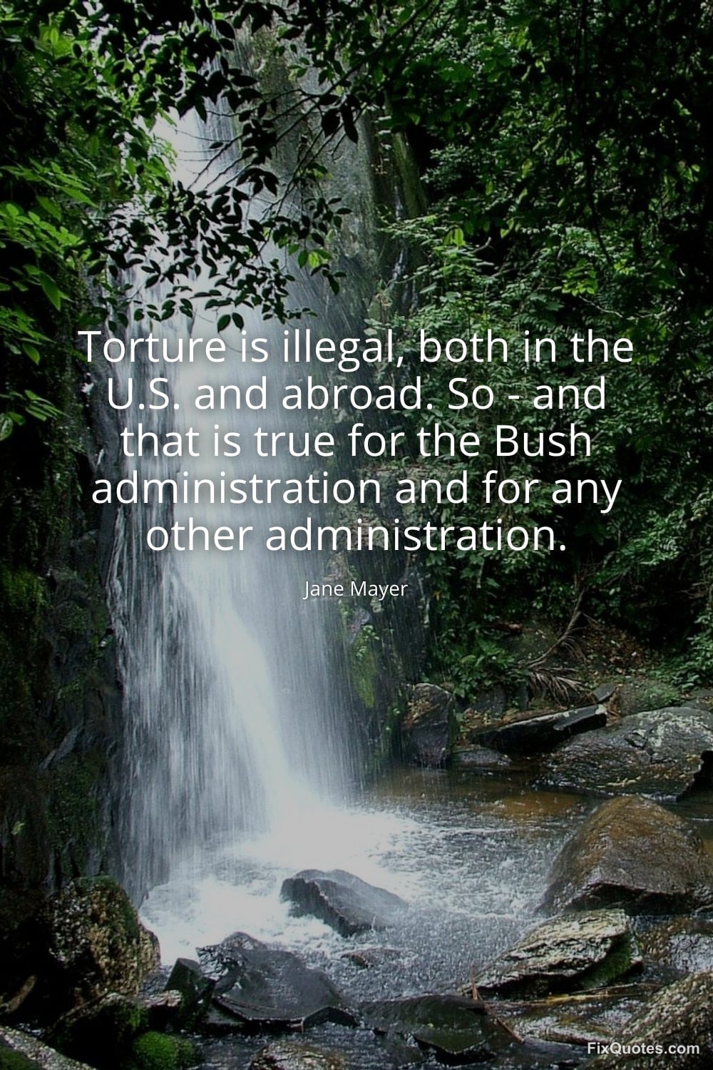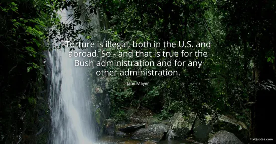 Mayer, Jane. "Torture is illegal, both in the U.S. and abroad. So - and that is true for the Bush administration and for any other administration." FixQuotes. January 17, 2026. https://fixquotes.com/quotes/torture-is-illegal-both-in-the-us-and-abroad-so-49752/.