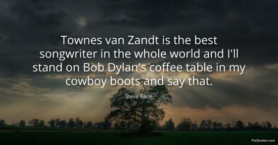Earle, Steve. (2026, January 16). Townes van Zandt is the best songwriter in the whole world and I'll stand on Bob Dylan's coffee table in my cowboy boots and say that. FixQuotes. https://fixquotes.com/quotes/townes-van-zandt-is-the-best-songwriter-in-the-116750/