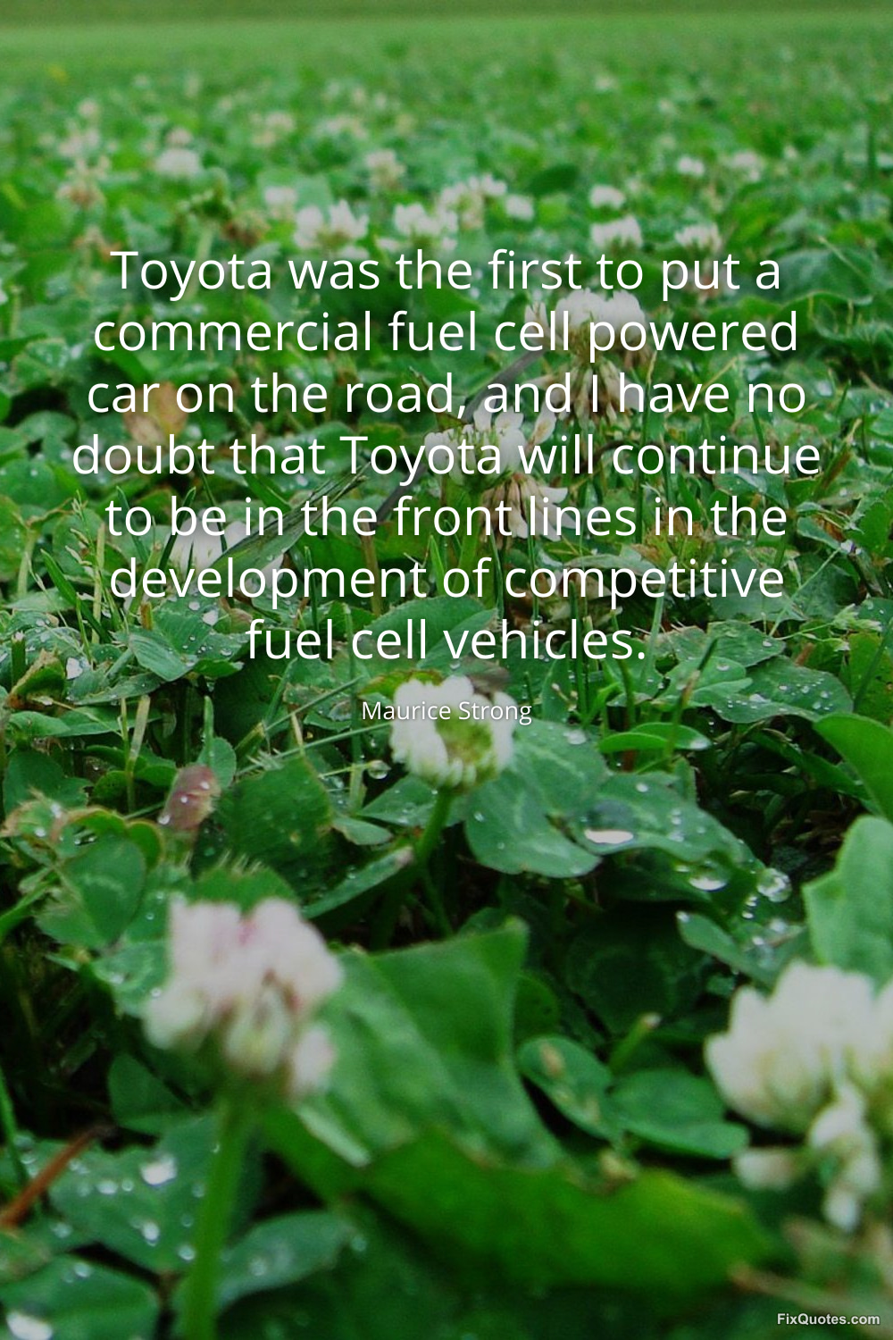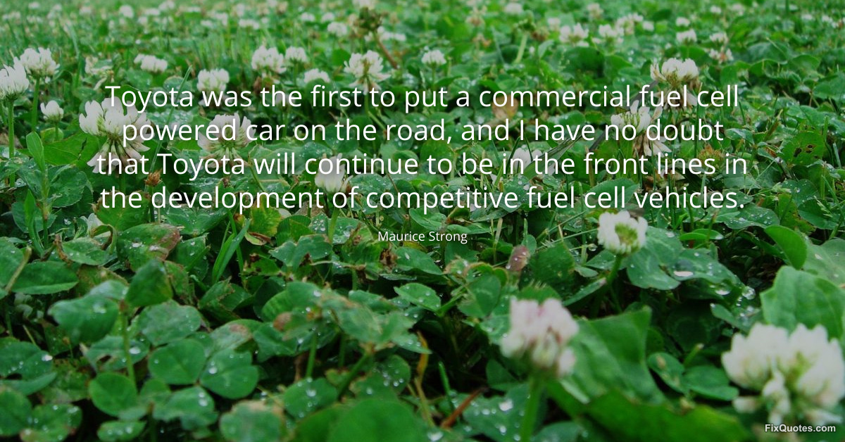 Strong, Maurice. "Toyota was the first to put a commercial fuel cell powered car on the road, and I have no doubt that Toyota will continue to be in the front lines in the development of competitive fuel cell vehicles." FixQuotes. January 17, 2026. https://fixquotes.com/quotes/toyota-was-the-first-to-put-a-commercial-fuel-78304/.