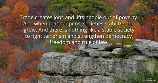 Hastert, Dennis. (2026, January 17). Trade creates jobs and lifts people out of poverty. And when that happens, societies stabilize and grow. And there is nothing like a stable society to fight terrorism and strengthen democracy, freedom and rule of law. FixQuotes. https://fixquotes.com/quotes/trade-creates-jobs-and-lifts-people-out-of-60766/