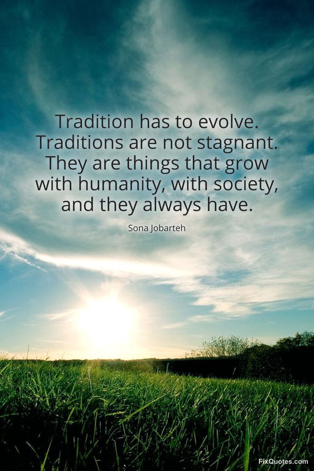 Jobarteh, Sona. (2026, February 16). Tradition has to evolve. Traditions are not stagnant. They are things that grow with humanity, with society, and they always have. FixQuotes. https://fixquotes.com/quotes/tradition-has-to-evolve-traditions-are-not-185510/