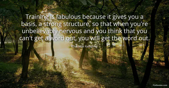 Rampling, Charlotte. (2026, January 17). Training is fabulous because it gives you a basis, a strong structure, so that when you're unbelievably nervous and you think that you can't get a word out, you will get the word out. FixQuotes. https://fixquotes.com/quotes/training-is-fabulous-because-it-gives-you-a-basis-50940/