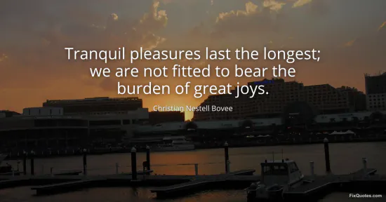 Bovee, Christian Nestell. "Tranquil pleasures last the longest; we are not fitted to bear the burden of great joys." FixQuotes. January 17, 2026. https://fixquotes.com/quotes/tranquil-pleasures-last-the-longest-we-are-not-43915/.