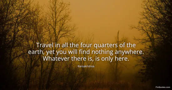 Ramakrishna. "Travel in all the four quarters of the earth, yet you will find nothing anywhere. Whatever there is, is only here." FixQuotes. January 17, 2026. https://fixquotes.com/quotes/travel-in-all-the-four-quarters-of-the-earth-yet-28577/.