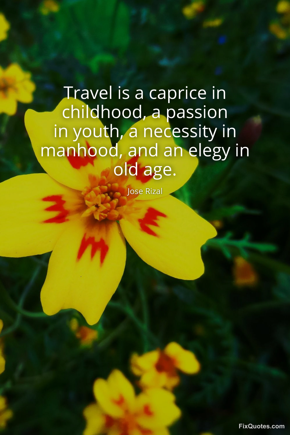 Rizal, Jose. (2026, February 10). Travel is a caprice in childhood, a passion in youth, a necessity in manhood, and an elegy in old age. FixQuotes. https://fixquotes.com/quotes/travel-is-a-caprice-in-childhood-a-passion-in-185085/