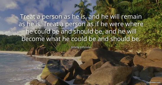 Johnson, Jimmy. (2026, January 13). Treat a person as he is, and he will remain as he is. Treat a person as if he were where he could be and should be, and he will become what he could be and should be. FixQuotes. https://fixquotes.com/quotes/treat-a-person-as-he-is-and-he-will-remain-as-he-126267/