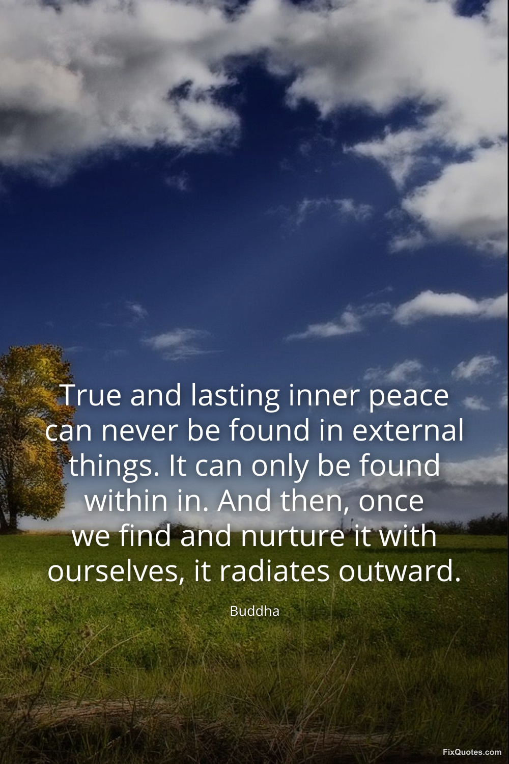 Buddha. (2026, March 10). True and lasting inner peace can never be found in external things. It can only be found within in. And then, once we find and nurture it with ourselves, it radiates outward. FixQuotes. https://fixquotes.com/quotes/true-and-lasting-inner-peace-can-never-be-found-185885/
