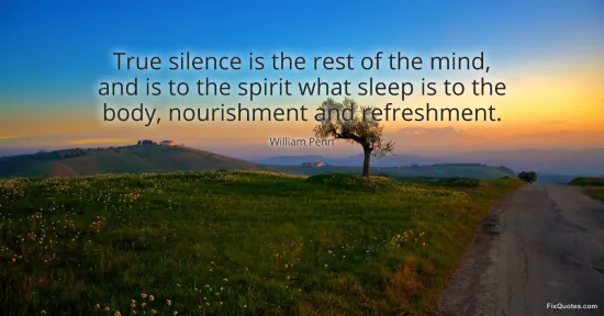 Penn, William. "True silence is the rest of the mind, and is to the spirit what sleep is to the body, nourishment and refreshment." FixQuotes. February 10, 2026. https://fixquotes.com/quotes/true-silence-is-the-rest-of-the-mind-and-is-to-128839/.