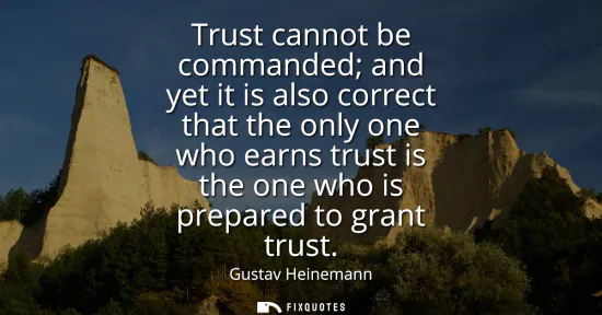 "Trust cannot be commanded; and yet it is also correct that the only one who earns trust is the one who is prepared to grant trust"