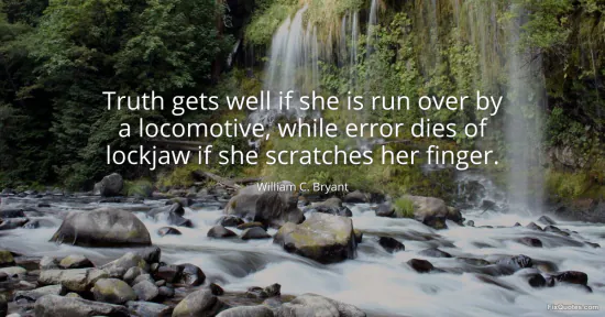 Bryant, William C. "Truth gets well if she is run over by a locomotive, while error dies of lockjaw if she scratches her finger." FixQuotes. January 16, 2026. https://fixquotes.com/quotes/truth-gets-well-if-she-is-run-over-by-a-108287/.