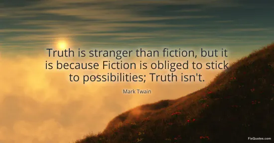 "Truth is stranger than fiction, but it is because Fiction is obliged to stick to possibilities; Truth isn't"