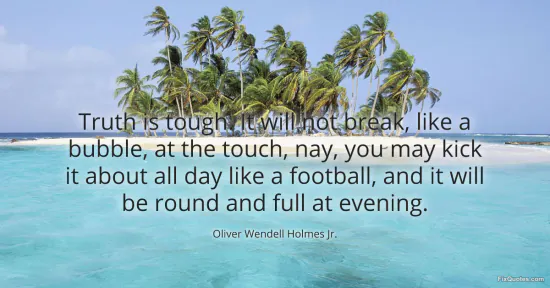Jr., Oliver Wendell Holmes. "Truth is tough. It will not break, like a bubble, at the touch, nay, you may kick it about all day like a football, and it will be round and full at evening." FixQuotes. January 15, 2026. https://fixquotes.com/quotes/truth-is-tough-it-will-not-break-like-a-bubble-at-152524/.