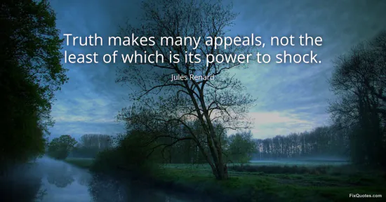 Renard, Jules. (2026, January 17). Truth makes many appeals, not the least of which is its power to shock. FixQuotes. https://fixquotes.com/quotes/truth-makes-many-appeals-not-the-least-of-which-61300/