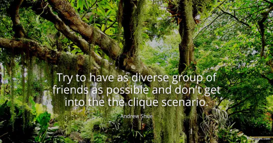 Shue, Andrew. "Try to have as diverse group of friends as possible and don't get into the the clique scenario." FixQuotes. January 17, 2026. https://fixquotes.com/quotes/try-to-have-as-diverse-group-of-friends-as-56516/.