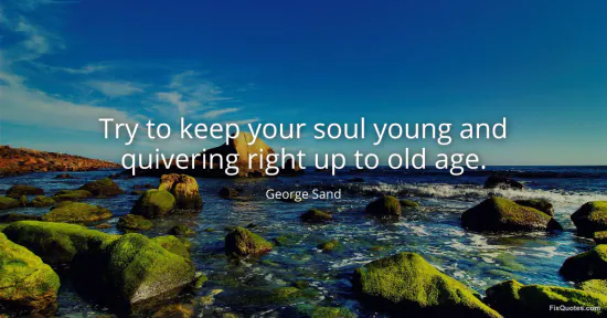 Sand isn’t offering a cute slogan about “staying young.” She’s prescribing a kind of insurgency: protect the part of you that still trembles, desires, risks, and gets bruised. “Young” here isn’t an aesthetic; it’s a nervous system. “Quivering” is the key word - almost indecent in its vulnerability. It suggests sensation before certainty, responsiveness before armor. The line flatters no one who prides themselves on composure. It implies that much of what we call maturity is just numbness made respectable.
