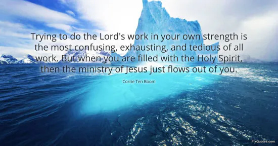Boom, Corrie Ten. (2026, January 15). Trying to do the Lord's work in your own strength is the most confusing, exhausting, and tedious of all work. But when you are filled with the Holy Spirit, then the ministry of Jesus just flows out of you. FixQuotes. https://fixquotes.com/quotes/trying-to-do-the-lords-work-in-your-own-strength-172847/