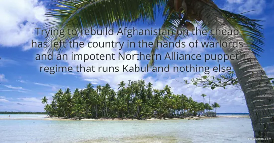 Rall, Ted. (2026, January 16). Trying to rebuild Afghanistan on the cheap has left the country in the hands of warlords and an impotent Northern Alliance puppet regime that runs Kabul and nothing else. FixQuotes. https://fixquotes.com/quotes/trying-to-rebuild-afghanistan-on-the-cheap-has-102920/
